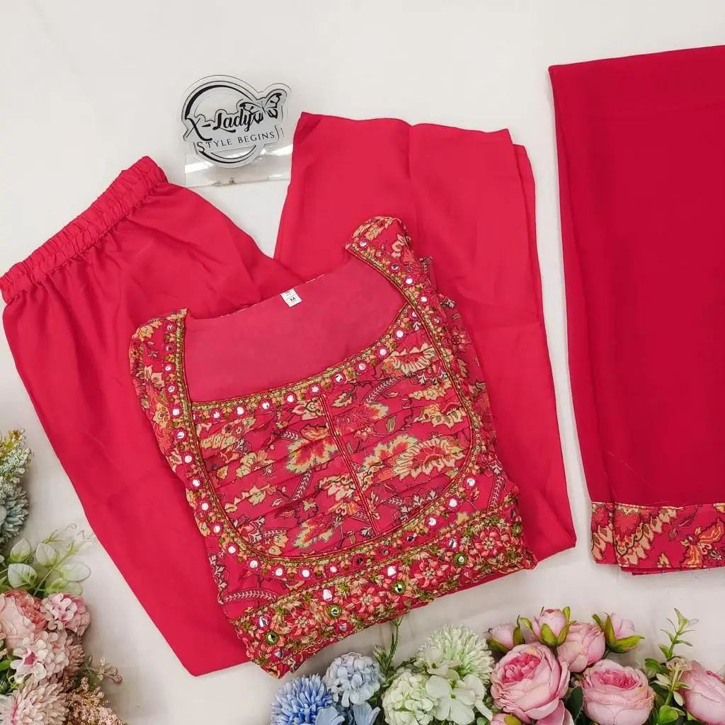 Looking for a multicolour Anarkali suit for women, mirror work Anarkali, or latest festive wear Anarkali dress? This stunning multicolour Anarkali gown with mirror work, printed pant and Nazneen dupatta is a perfect blend of tradition and trend. Crafted in soft georgette fabric with full lining, this Anarkali suit offers both comfort and royal elegance.
